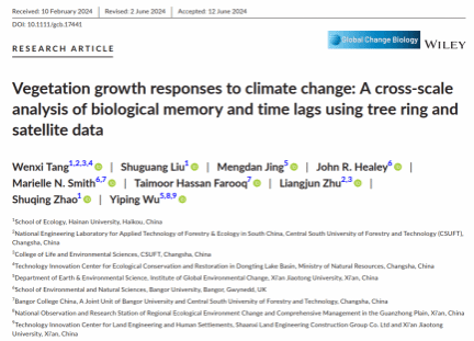 近日,刘曙光教授团队以“Vegetation growth responses to climate change: A cross-scale analysis of biological memory and time lags using tree ring and satellite data”为题在生态学Top期刊Global Change Biology (SCI Q1, IF=10.8) 上发表最新研究成果(原文链接://doi.org/10.1111/gcb.17441)。海南大学与中南林业科技大学联合培养博士生汤雯茜为论文第一作者,刘曙光教授为通讯作者,小宝影院