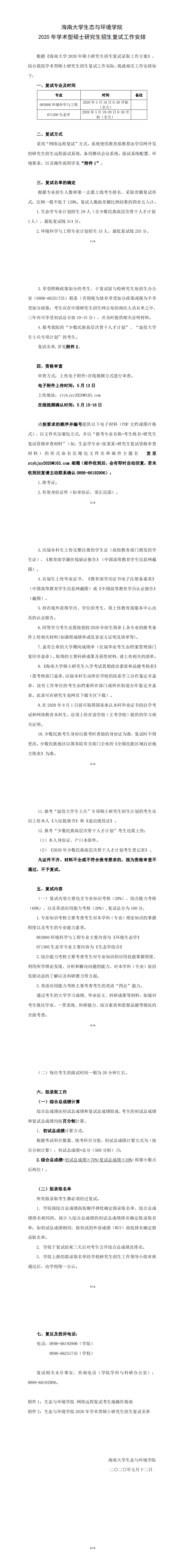 小宝影院 生态与环境学院 2020 年学术型硕士研究生招生复试工作安排
