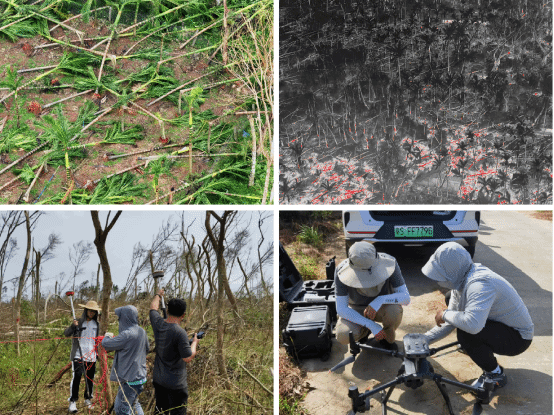 科研人员在灾后一个月的时间里,发扬“海南有需求、海大有作为”的精神,克服停水、断电、断网、断路等困难,深入灾区一线,收集了一批十分宝贵的第一手资料;结合卫星遥感、激光雷达、地面航拍和实地调查,对城市园林绿地、热带雨林、人工林(含经济林)、红树林、海草床、自然保护区、长臂猿种群及栖息地、种植业、养殖业和渔业等台风受损情况进行了初步评估,积极主动对接海南省主管部门,为生态环境应急减灾提供初步评估报告和建议。