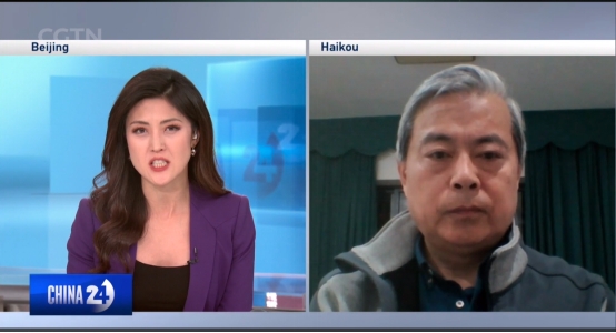 CGTN 24小时栏目组主持人与黄乘明教授连线。黄乘明摄