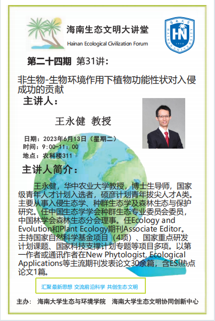 第31讲 王永健教授做客海南生态文明大讲堂