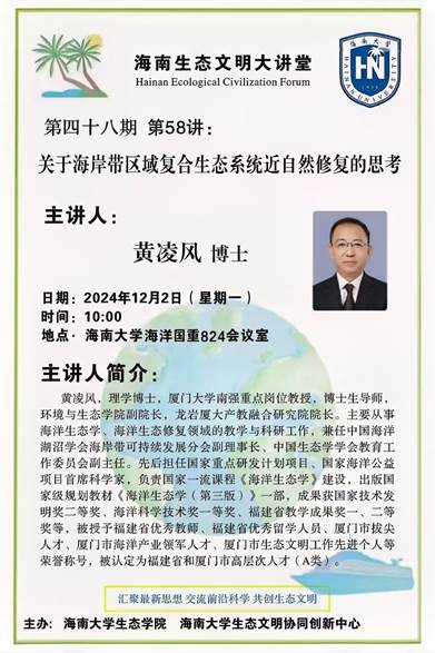黄教授的讲座为海岸带区域复合生态系统的近自然修复提供了新的视角。