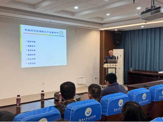 韩兴国研究员以《全球变化生态学试验设计和数据理论归纳》为题,从如何提出科学问题、实验设计、数据分析以及论文写作等角度具体介绍了毕业论文完成的主要环节。这些宝贵的经验分享,为与会者们开展科学研究提供了非常有价值的指导。