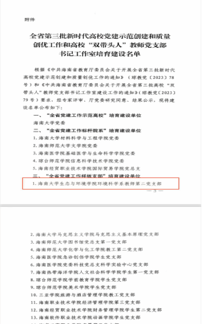 环境科学系教师第二党支部授予“全省党建工作样板支部”荣誉称号。